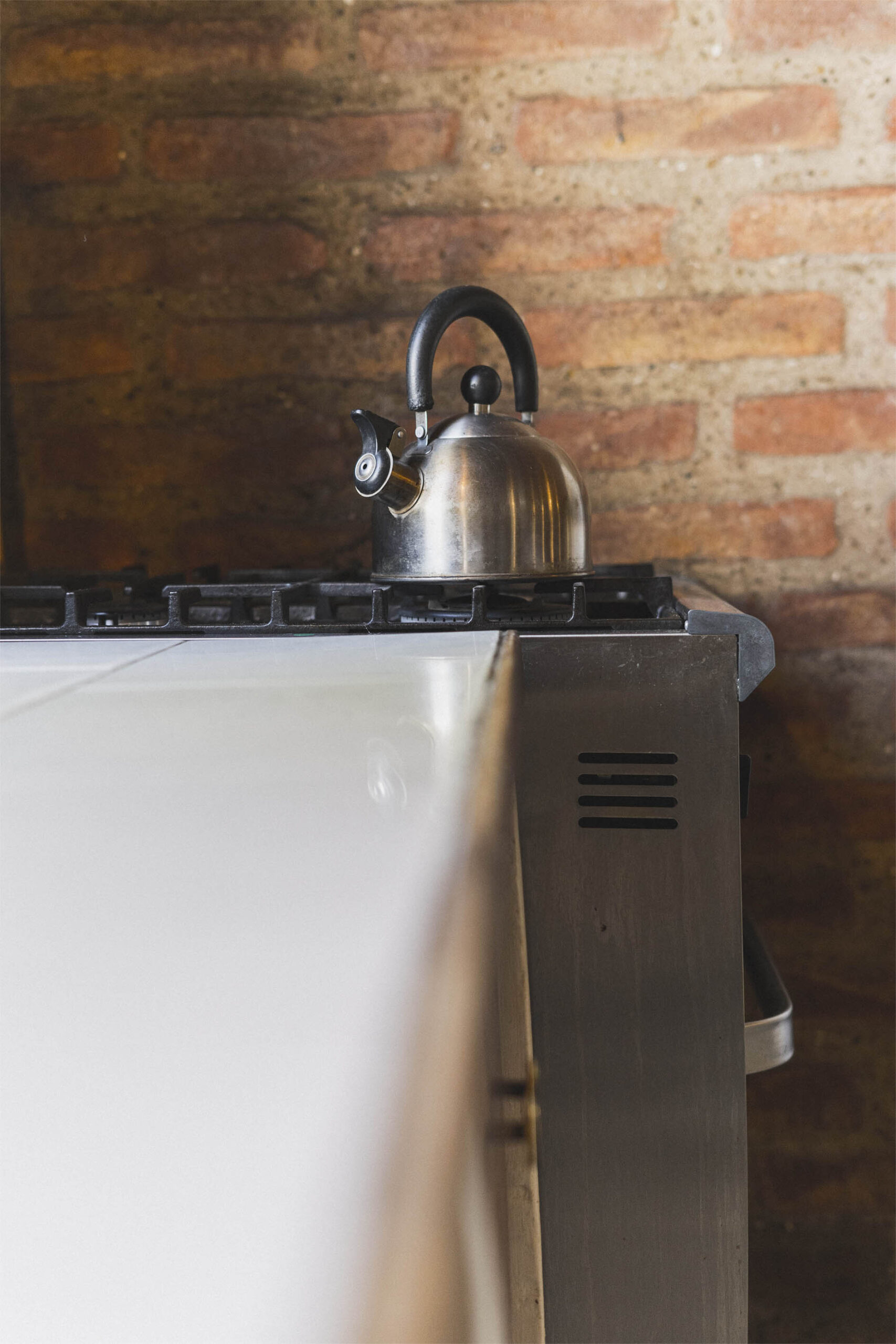 Cada bungalow de Ruca Hue cuenta con una cocina completamente equipada, que incluye heladera, cocina, vajilla y cubiertos, además de todos los utensilios necesarios, como ollas y sartenes. Todo lo que necesitás para disfrutar de tu estadía con la comodidad del hogar.