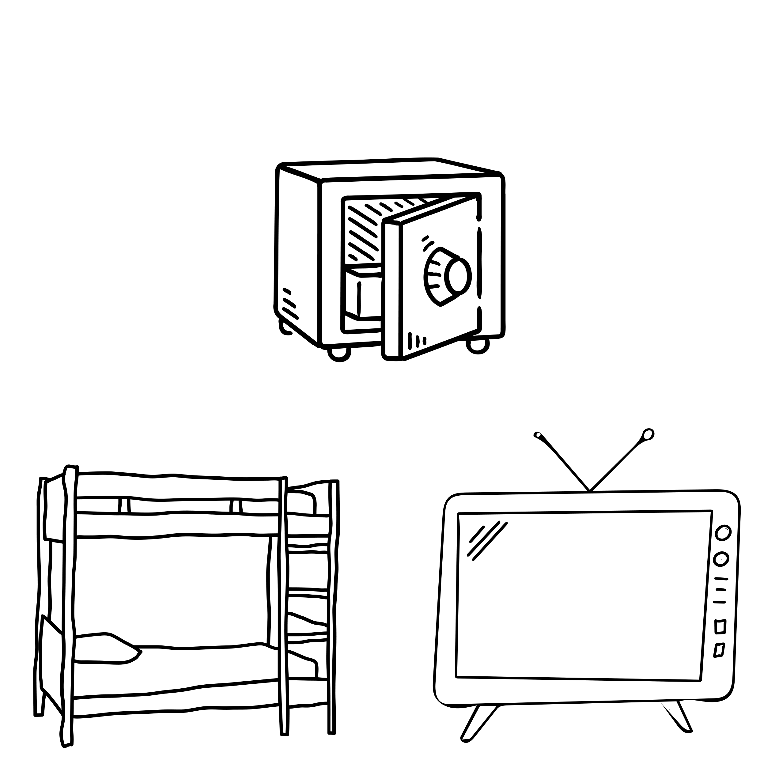 Los bungalows de Ruca Hue ofrecen dos dormitorios con camas marineras y un estar con dos camas individuales. Además, están equipados con TV y caja fuerte para tu comodidad y seguridad.